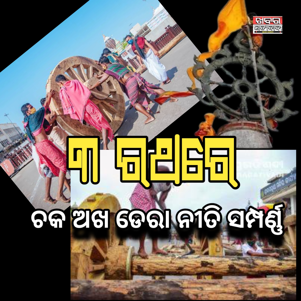 ପୁରୀ: ତିନି ରଥରେ ଡେରା ହେଲା ଚକ-ଅଖ । ଆଜି ପବିତ୍ର ଶ୍ରୀକ୍ଷେତ୍ର ଭଉଁରୀ । ବିଧି ଅନୁଯାୟୀ ତିନି ରଥର ଛଅଟି ନାହାକ, ଚକ ସହ ତିନୋଟି ଅଖ ଡେରାଯାଇଛି । ଯାହାକୁ ଚକଅଖ ଡେରା ନୀତି କୁହନ୍ତି । ଏଥିପାଇଁ ବିଶ୍ଵକର୍ମା ମହାରଣାମାନେ ୬ ଟି ନାହାକ ଚକ ଓ ତିନୋଟି ଅଖ ପ୍ରସ୍ତୁତ କରି ରଖିଛନ୍ତି ।