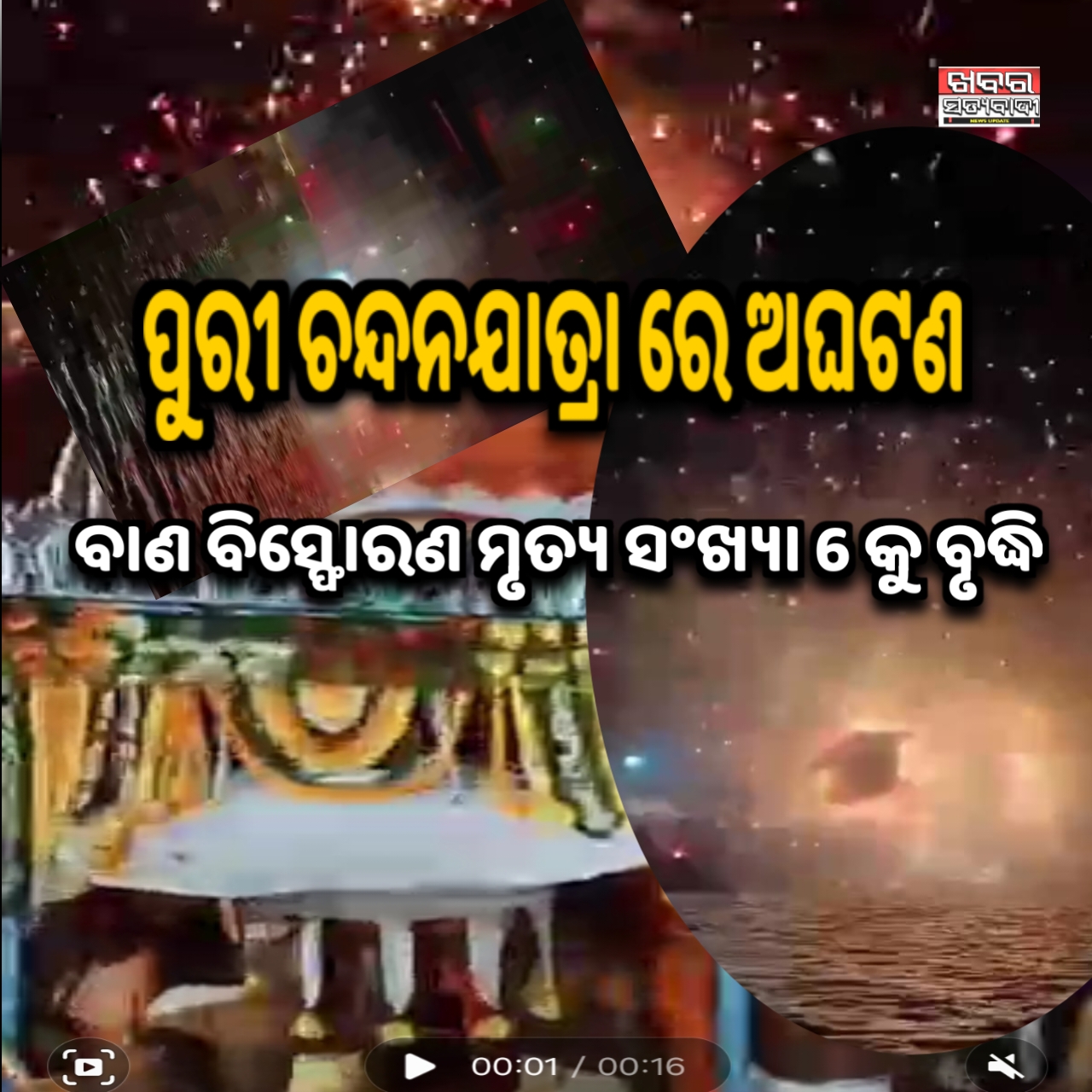 ଖବର ସତ୍ୟବାଦୀ ଓଡ଼ିଆ NEWS :ପୁରୀ ନରେନ୍ଦ୍ର ପୁଷ୍କରିଣୀବାଣ ବିସ୍ଫୋରଣ ଟ୍ରାଜେଡିରେ ମୃତ୍ୟ ସଂଖ୍ୟା ୬କୁ ବୃଦ୍ଧି ହୋଇଛି । ଆଜି ସକାଳୁ ଭୂବନେଶ୍ୱରର ଏକ ବେସରକାରୀ ହସ୍ପିଟାଲରେ ପୁରୀ ଖଣ୍ଡିଆବନ୍ଧର ହେମନ୍ତ ସାହୁଙ୍କର ମୃତ୍ୟ ହୋଇଥିବା ବେଳେ ଏମ୍ସରେ ନରେନ୍ଦ୍ରକୋଣର ସୌମ୍ୟରଞ୍ଜନ ସାହୁଙ୍କର ବିୟୋଗ ହୋଇଛି । ସୌମ୍ୟରଞ୍ଜନ ବଳଗଣ୍ଡି ହାଇସ୍କୁଲର ୬ଷ୍ଠ ଶ୍ରେଣୀର ଛାତ୍ର ।